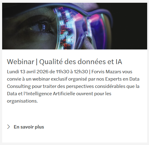 Forvis Mazars vous convie à un webinar exclusif organisé par nos Experts en Data Consulting pour traiter des perspectives considérables que la Data et l’Intelligence Artificielle ouvrent pour les orga...
